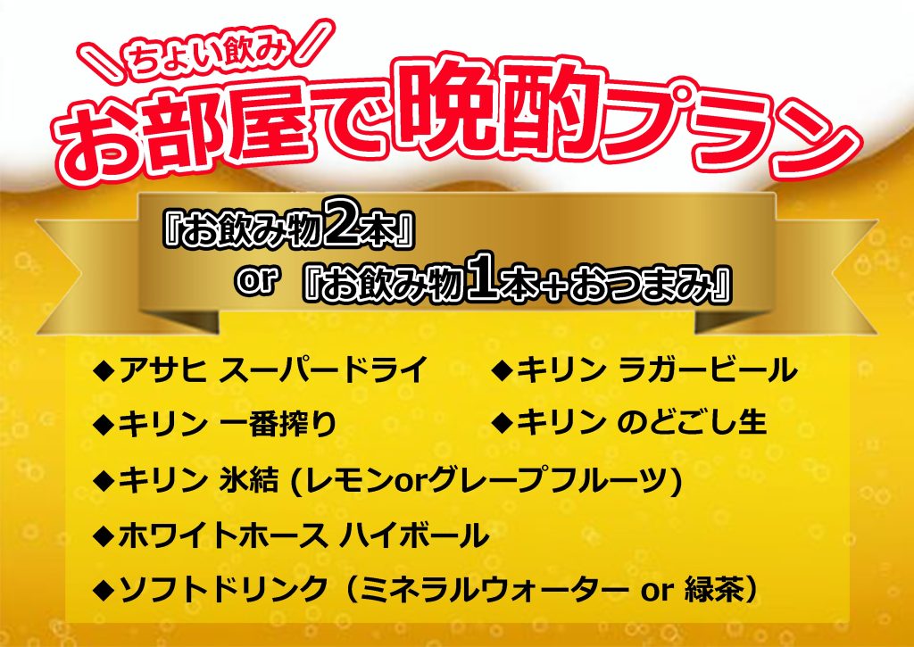 お飲み物2本orお飲み物1本+おつまみ付き♪お部屋で晩酌プラン